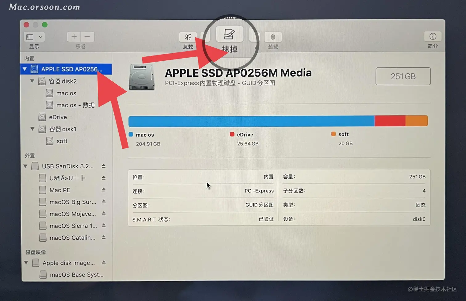 - 下图中,如果你的电脑想安装10.14系统或者匹配的更低版本,格式 则需要选择 macos 扩展日志式,一般来说T2芯片的出厂系统应该都是APFS,你选择APFS都是没问题的。