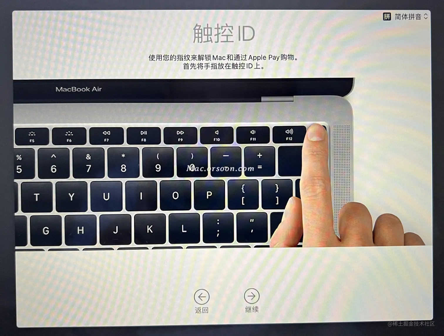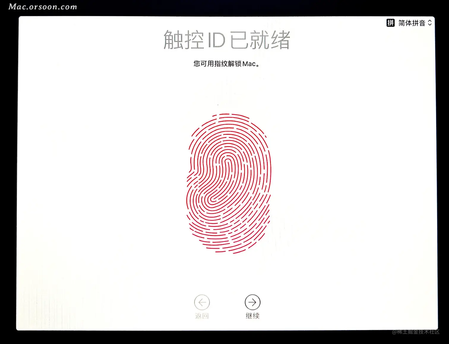 录入指纹信息,如果你是 iMac 可以跳过,小键盘带指纹的 可以现在就录入了