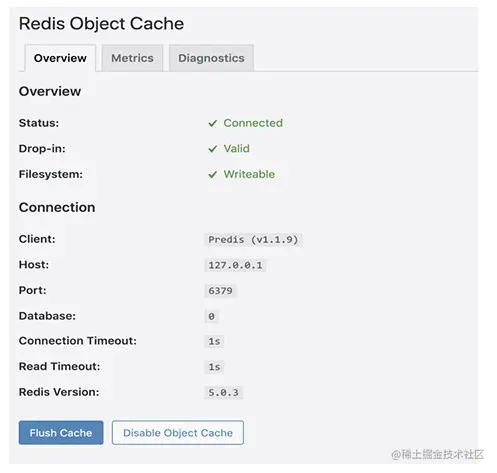 Redis Object Cache用来启用redis