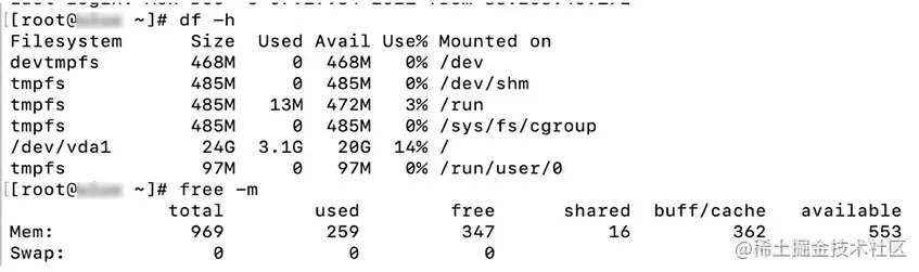 首先使用df -h