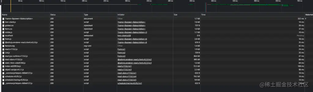 如果你用Chrome DevTools监控该应用程序,你可以看到Astro已经删除了所有的JavaScript。因此,没有任何React代码加载到浏览器中。
