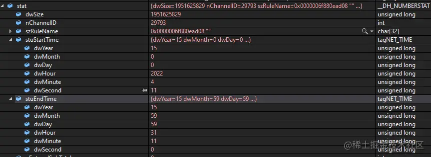 在获取行人流量统计时,统计的时间点返回的信息是错误的。年/月/日/时/分/秒信息均有误,如:年(dwYear)显示为15,如下图: