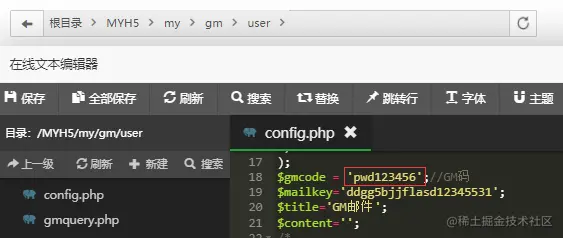 后台GM码需要修改文件/MYH5/my/gm/user/config.php。