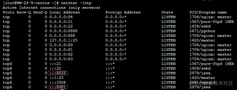 查看监听接口,一般8025和8081端口启动监听就没有问题。