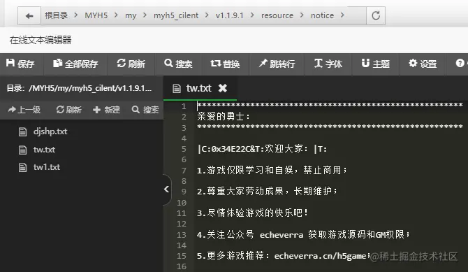 游戏的公告需修改文件\MYH5\my\myh5_cilent\v1.1.9.1\resource\notice\tx.txt。