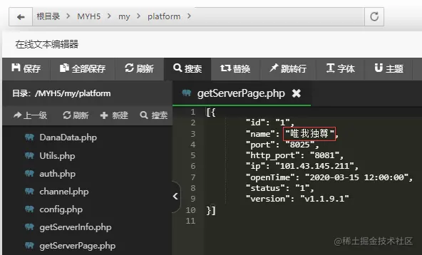 修改游戏区名需要修改两处,首先修改文件/MYH5/my/platform/getServerPage.php。