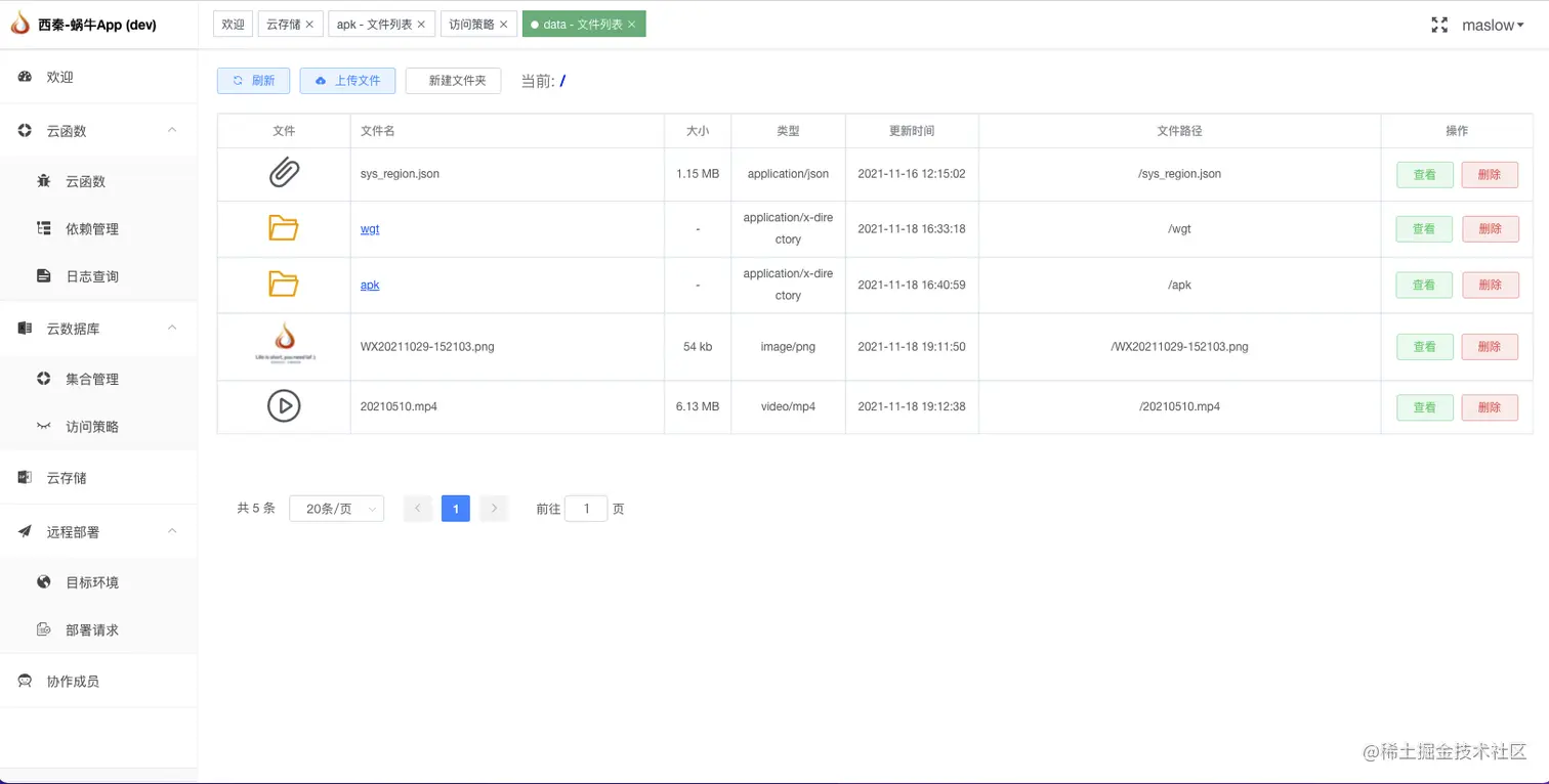 - 提供云函数引擎、文件存储、数据访问策略、触发器、WebSocket 等能力,开箱即用,5 分钟上线应用,前端秒变全栈。