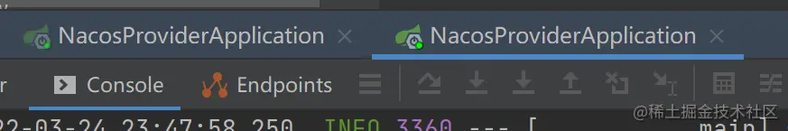 我这里启动两份服务,端口号分别为8080和8090,启动好之后在控制台就可以看到两个一模一样的启动类。