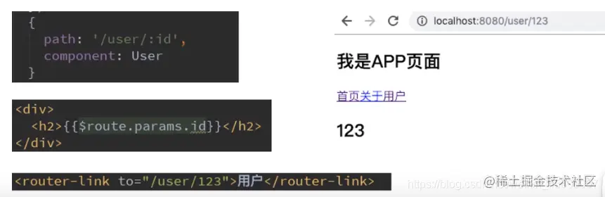 - 这种path和Component的匹配关系,我们称之为动态路由(也是路由传递数据的一种方式)