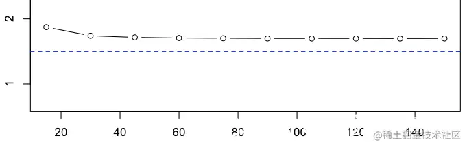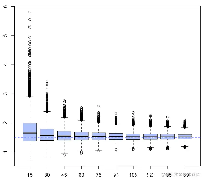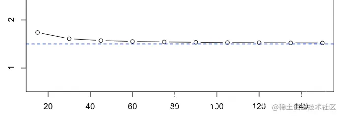 但它仅基于一个样本。再次考虑数千个样本,让我们看看 Hill 统计量如何,