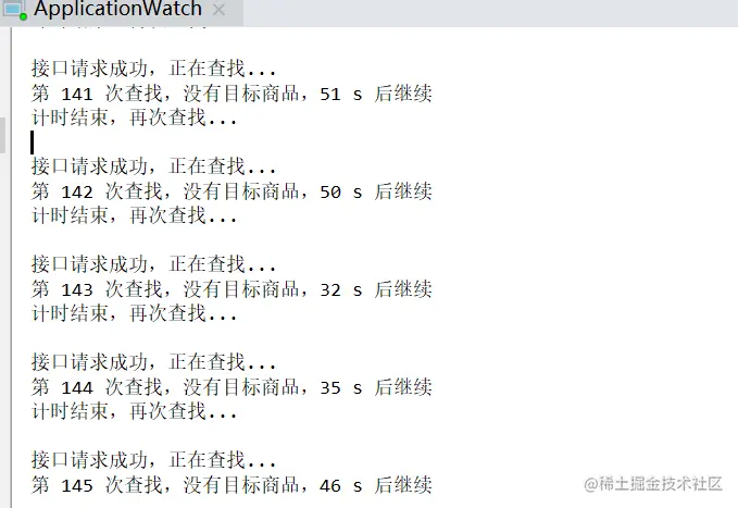 这里我们千万不要暴力调用叮咚的接口,所以我设置了等待时间,间隔时间在 30s 到 60s 之间,最后运行程序即可。