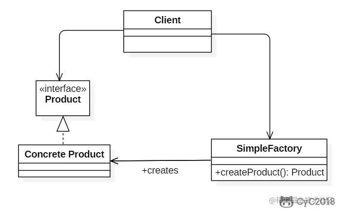 产生耦合关系的是简单工厂类和具体产品类,实现了客户与产品之间的耦合,用于创建一个对象