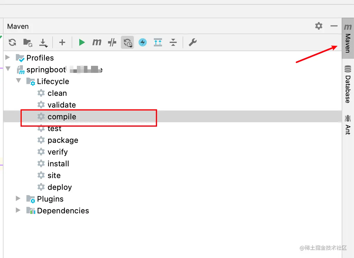 或者点击 idea 右侧的 maven 菜单栏,点击 compile:
