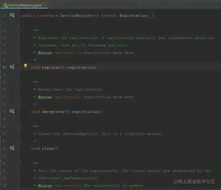 Registration:服务实例的数据的封装,提供获取包括ip、端口之类的服务基本信息的方法