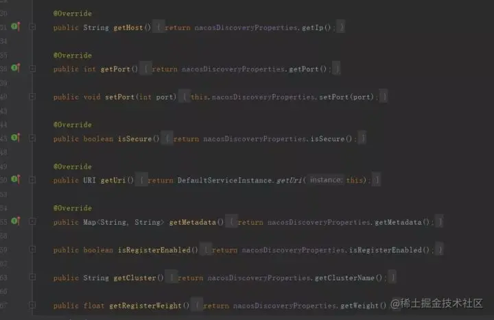 方法的实现其实就是通过NacosDiscoveryProperties来获取数据的,NacosDiscoveryProperties就是我们在application配置文件配置的属性的封装对象。