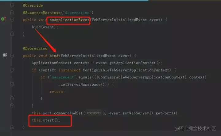 由于监听了事件,所以直接看onApplicationEvent方法的实现就行了