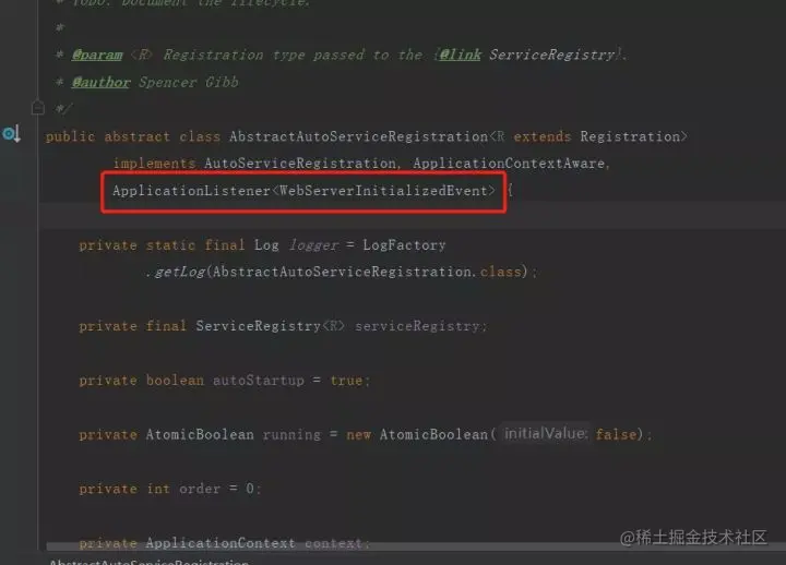 AbstractAutoServiceRegistration:自动注册类,这个类监听了WebServerInitializedEvent事件,容器启动的时候,会发布这个事件,然后触发自动注册