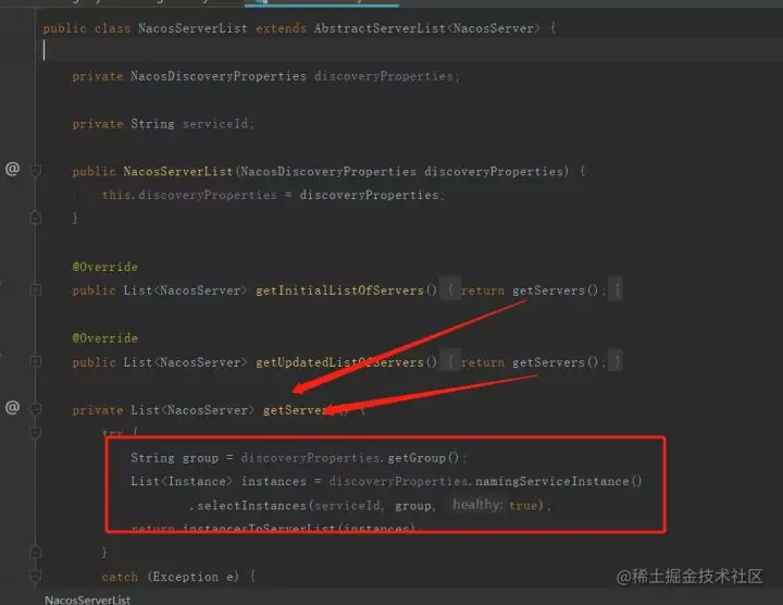 可以看出,实现其实很简单,就是通过nacos提供的api NamingService来实现获取服务实例,然后转换成ribbon认识的NacosServer。