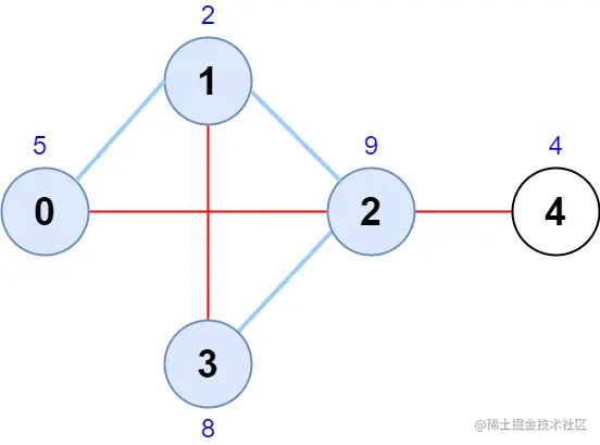 根据题意,有一个 n 个节点的无向图,索引编号从 0 到 n - 1 。给定一个长度为 n 的 0 索引整数数组 score ,其中 scores[i] 表示节点 i 的分数。还给出一个二维整数数组 edges ,其中 edges[i] = [ai, bi] 表示存在连接节点 ai 和 bi 的无向边。