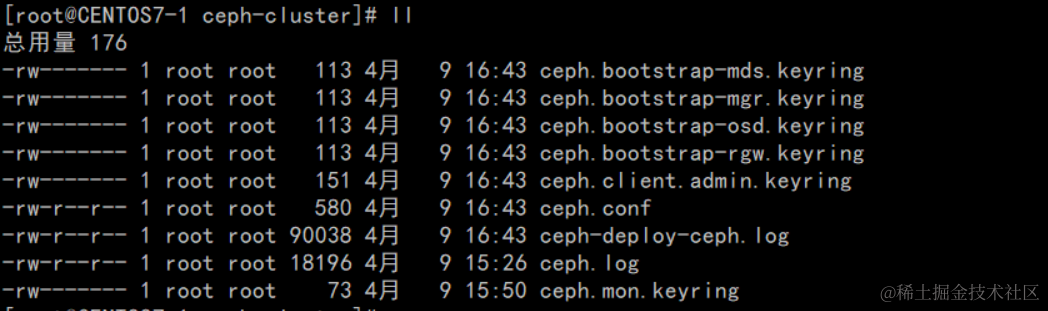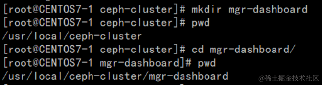 注意: 此目录作为 ceph 操作命令的基准目录, 会存储处理配置信息。
