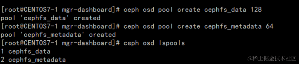 [root@CENTOS7-1 mgr-dashboard]# ceph fs ls