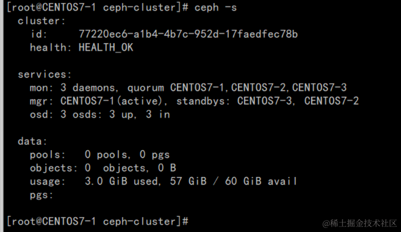 ceph-deploy --overwrite-conf mds create CENTOS7-1 CENTOS7-2 CENTOS7-3