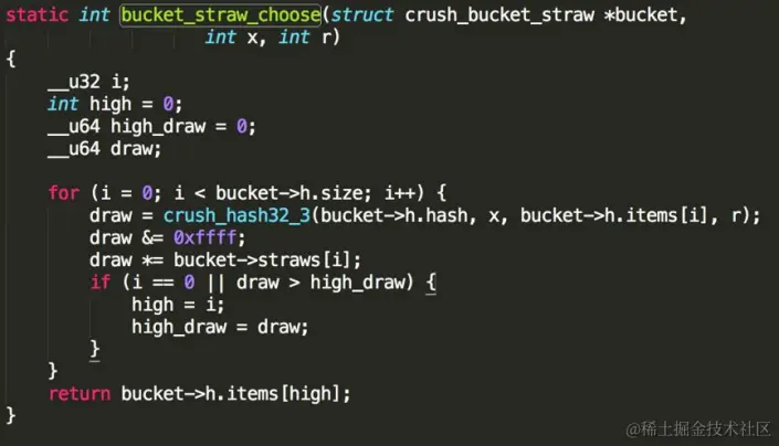 - 增加OSD权重: ( draw &0xffff ) * osd_weight ==> osd_straw 将计算出的HASH值与OSD的权重放置一起,这样就能够得到每个OSD的签长, 权重越大的,数值越大。