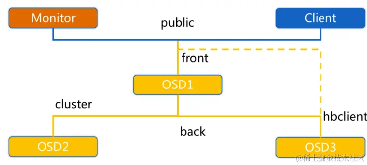 OSD节点会监听public 、 cluster 、 front和back****四个端口