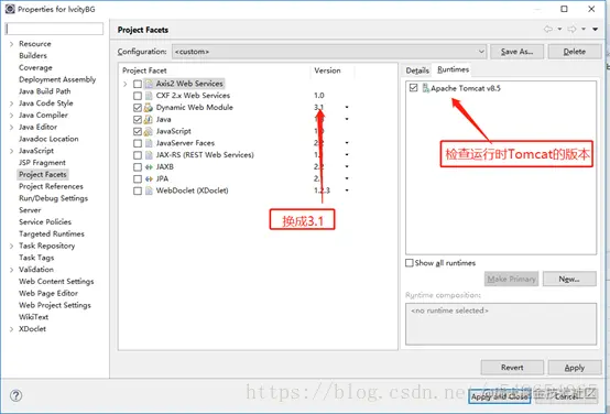 点击项目右键–properties—eclipse—project Facets设置Dynamic Web Module 为3.1(这是你在web.xml配置的servlet版本)