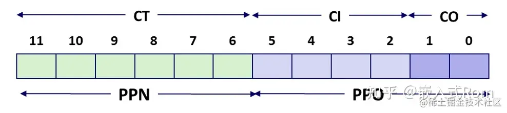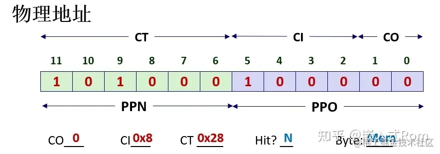 - 物理页号偏移PPO = 组索引CI + 行内偏移CO。
