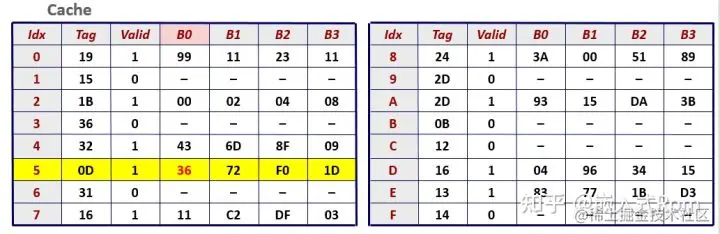 高速缓存先取出物理地址的索引位是 0b00101,也就是 0x5。