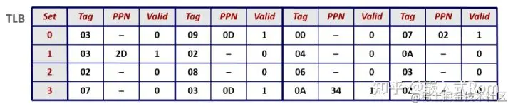 我们只根据索引来查找组,每一个条目都有一个标记位。一个 TLB 条目如果有效,它就含有一个物理地址。