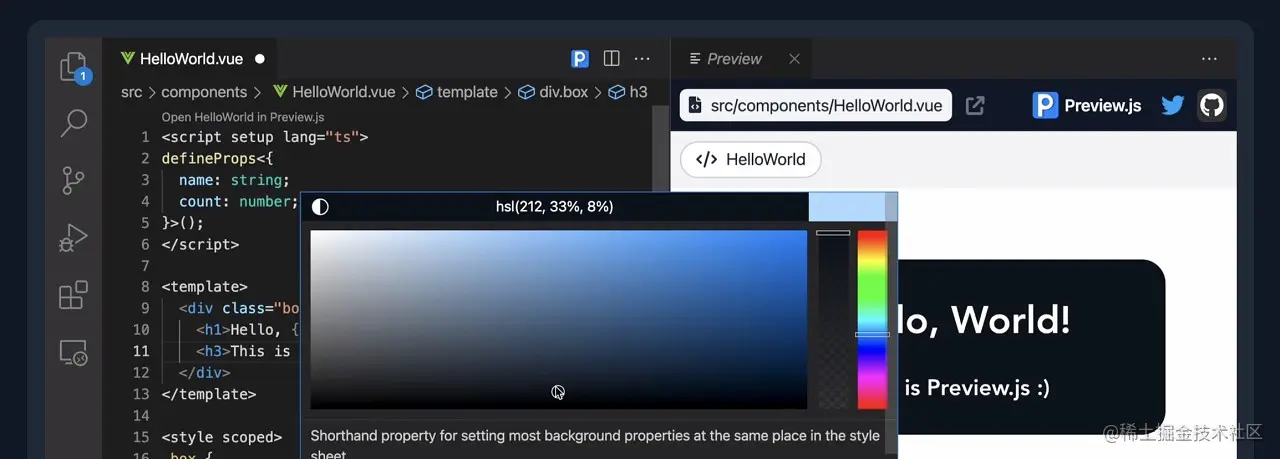 Preview.js:在 IDE 中即时预览 UI 组件 — 在 VS Code 或 JetBrains IDE 中开箱即用,与 React 和 Vue 构建的组件兼容。