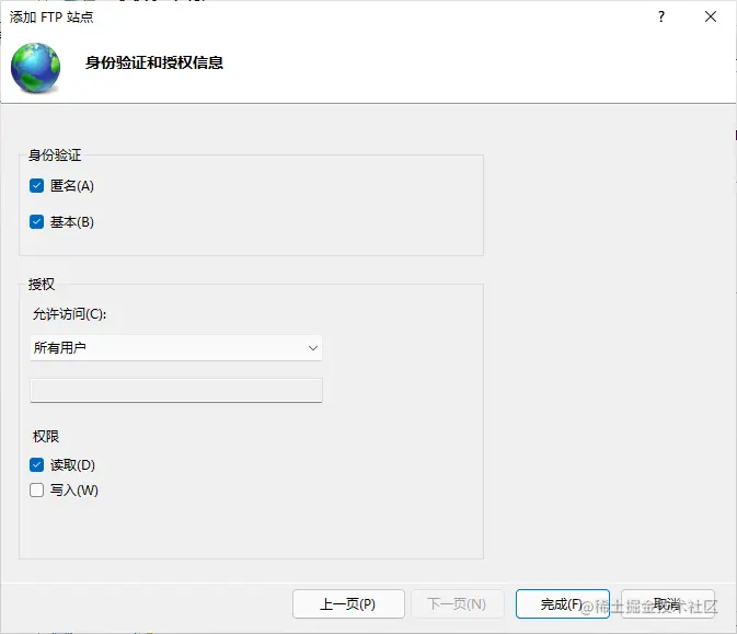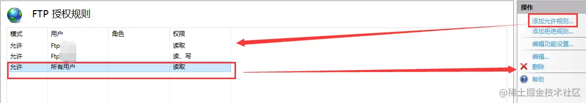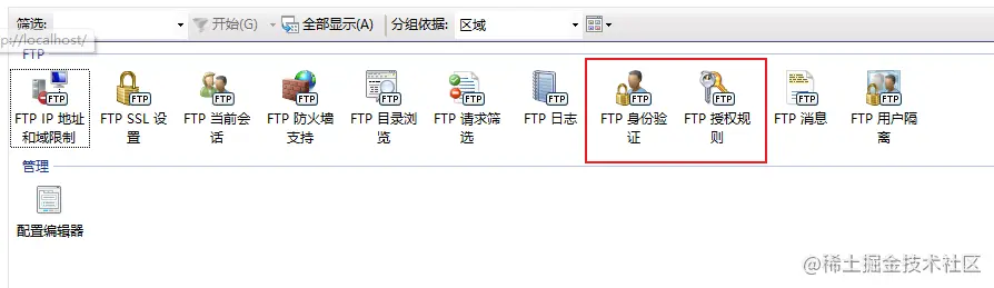 设置“FTP身份验证” 和 “FTP授权规则”
