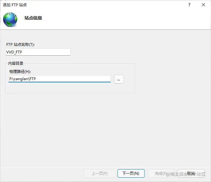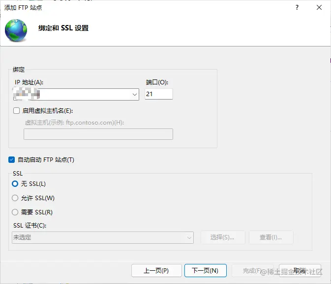 - 如果想自动启动就勾选 自动启动ftp站点