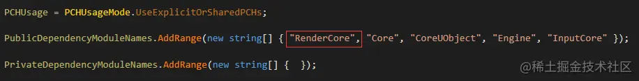 /{YourProjectName}/Source/{YourProjectName}/{YourProjectName}.Build.cs文件。添加 RenderCore -