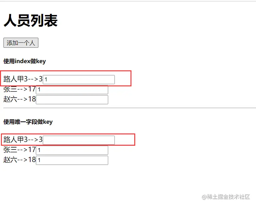 - 为什么遍历列表时,key最好不要用index? 代码示范: