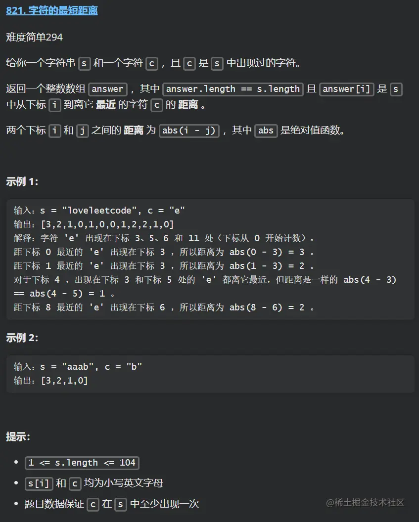本次刷题日记的第 41 篇,力扣题为:821. 字符的最短距离 ,简单
