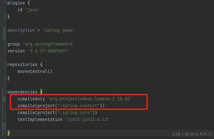 一般情况下,我们的测试内容都是 aop ioc 之类的内容,添加一个 spring-context 模块即可满足要求。 spring-context 模块已经包含了 bean 和 core 两块的内容: