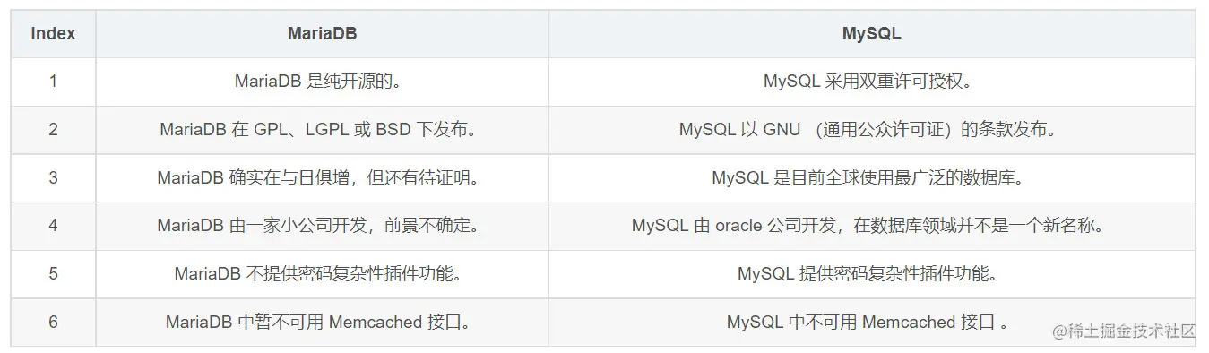 | MariaDB | MySQL |