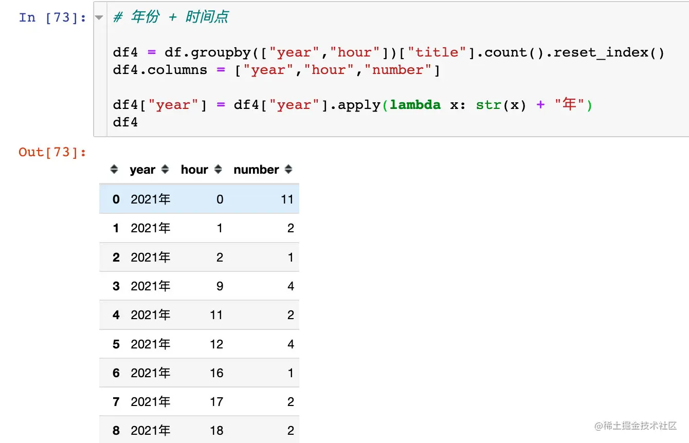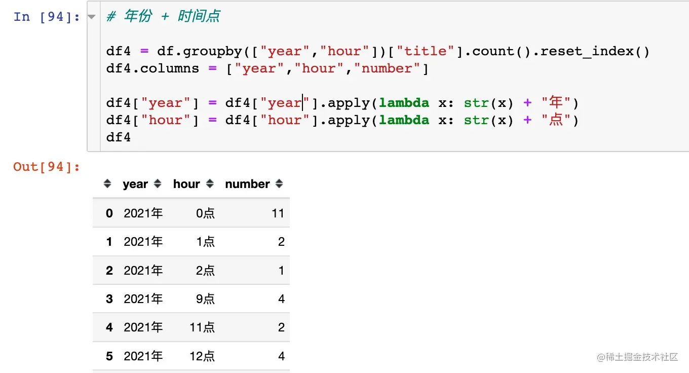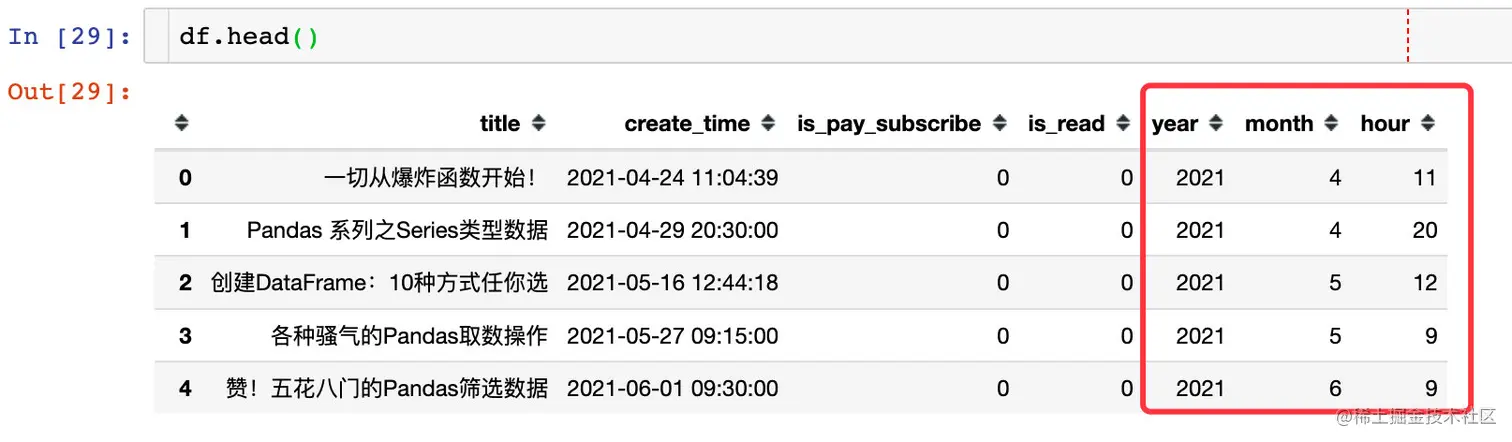 df["hour"] = df["create_time"].dt.hour # 具体小时
