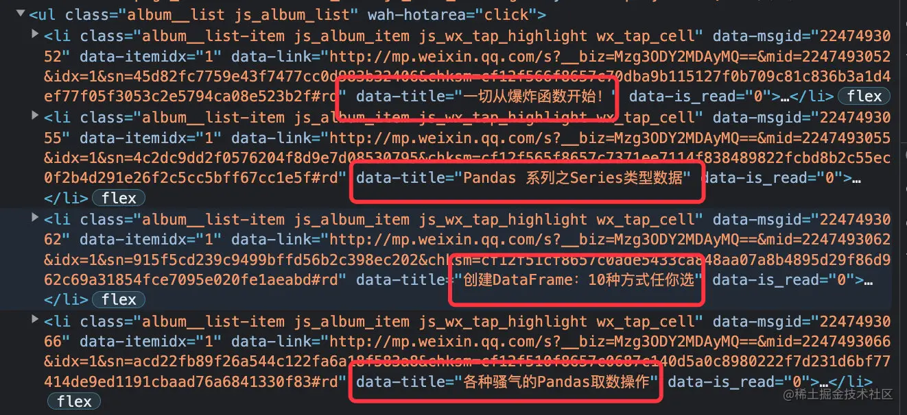 一开始小编是准备直接从微信的后台获取到相关网页的源码,然后通过正则表达式从源码中解析出来:标题+时间
