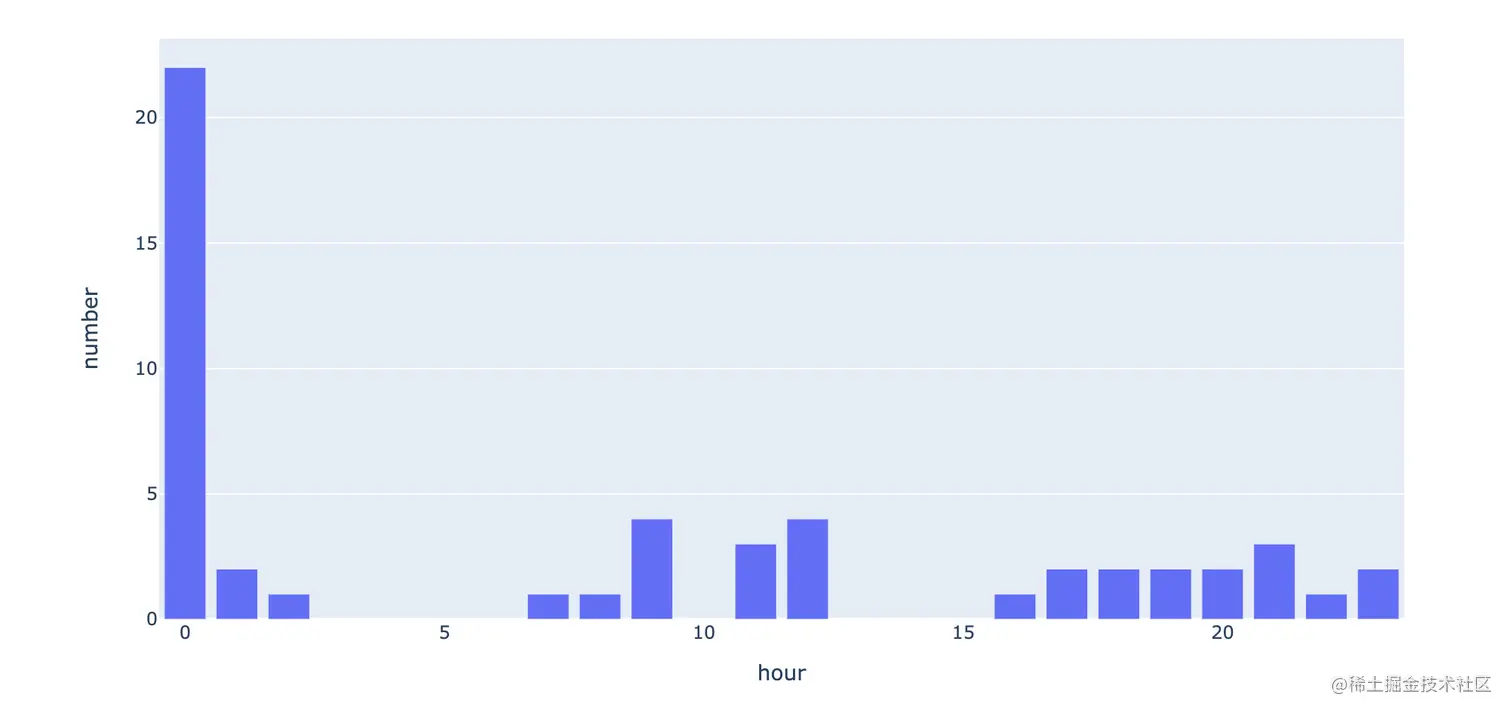 统计每个时间点的发文数量 :0点发文这么多!!!!(一般文章都是定时发的)
