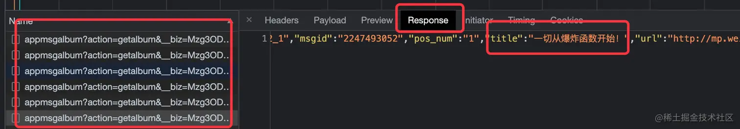 而且,微信公众号的后台是发送的ajax请求,多滚动几次,所有的文章才全部显示出来(上面的左边)