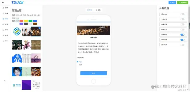 目前市面上的表单平台虽然功能强大,但是部分业务组件或者额外收取存储等费用,且费用较高,在数据隐私性较强且有特殊表单需求的场景下无法满足业务需求,国内的开源表单系统比较少,tduck表单应运而生。愿景能够让中小企业低成本拥有独立自定义表单问卷,快速赋能业务。
