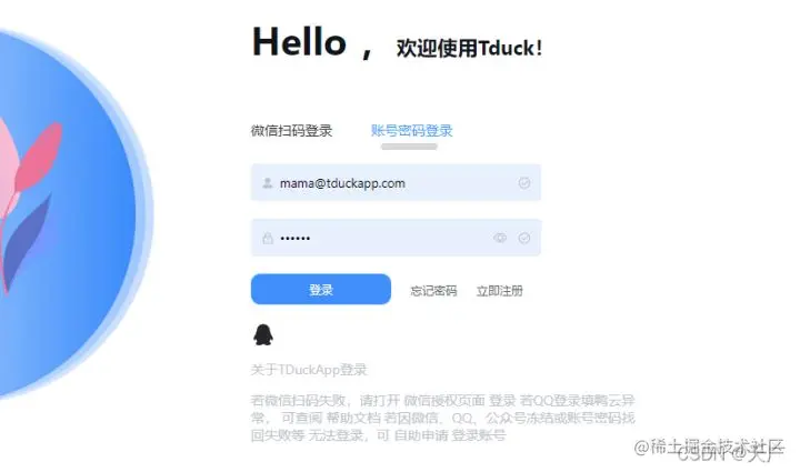 - 演示地址:www.tduckcloud.com