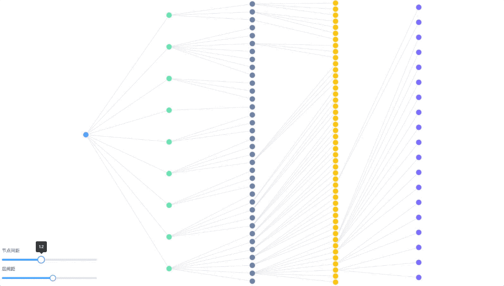 在很多业务场景中,用户更倾向于采用分层的方式来观察图谱数据,因为这样有利于理解和分析图谱数据,比如:根据用户探索路径分层、边关系聚合分层、业务属性归类分层、指定中心点路径分层等等,这些需求对图谱的样式和布局形式提出了更高的要求。得益于D3.js力学布局的灵活性和拓展能力,我们在业务实践的过程中实现了几种常用的布局方案: