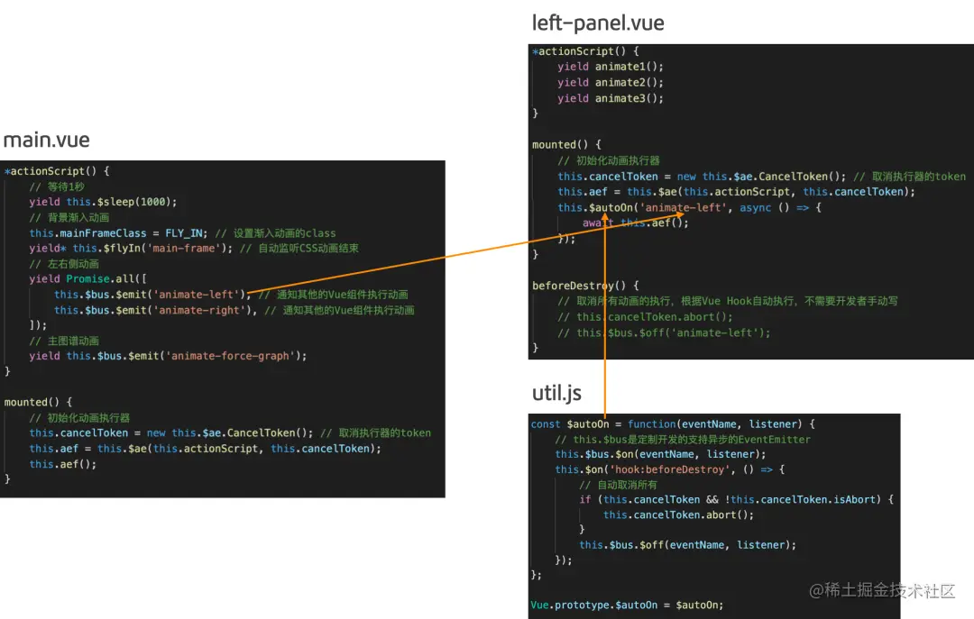 - 定制开发了支持异步事件的EventEmitter,emit函数会返回一个Promise,resolve时就会得知emit的动画已经执行完毕,使Vue跨组件的动画调度更容易。