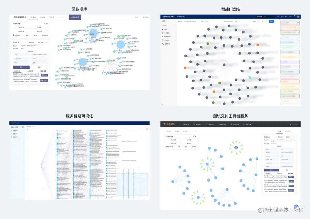 - 图分析应用:对业务场景中的关系类数据进行可视化展示,帮助业务同学快速了解链路故障、组件依赖等问题。