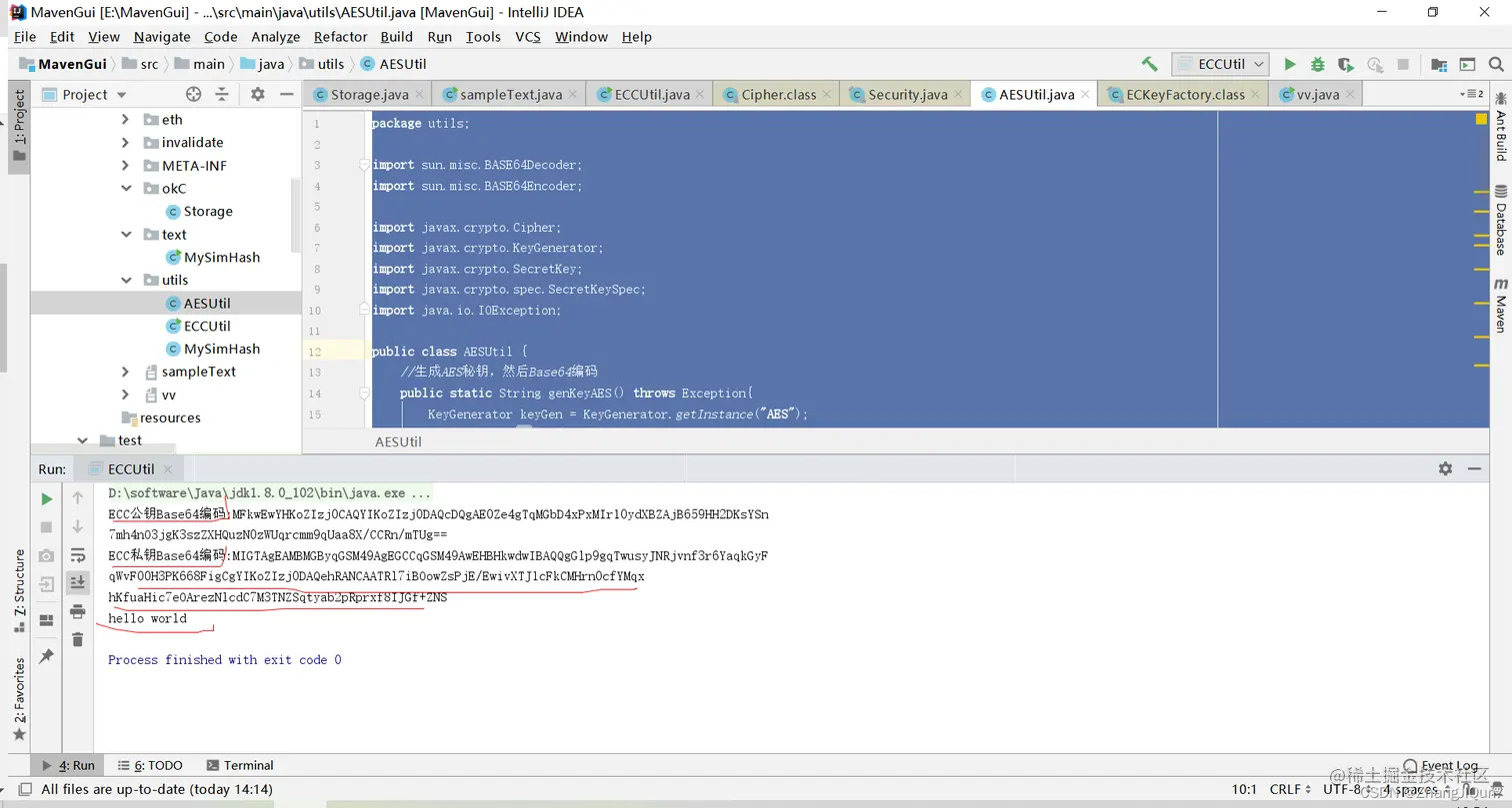 ****本文通过。 java 语言 实现ECC+AES加密 。 AES主要为我们生成个人公钥私钥。 Ecc椭圆曲线算法对我们的数据体进行加密。JDK中自带了椭圆曲线的签名,但是没有实现椭圆曲线的加密****解密。 通过引入 bouncycastle库 实现 实现椭圆曲线的加密解密。